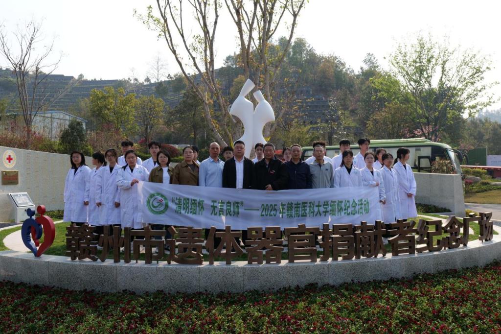 3月24日上午,基础医学院联合赣州市红十字会在赣州市蓉龙人文纪念园开展“大爱无言 感恩良师”遗体器官捐献者缅怀纪念活动。赣州市红十字会、蓉龙人文纪念园工作人员,校团委、基础医学院师生代表共计30余人参加活动。