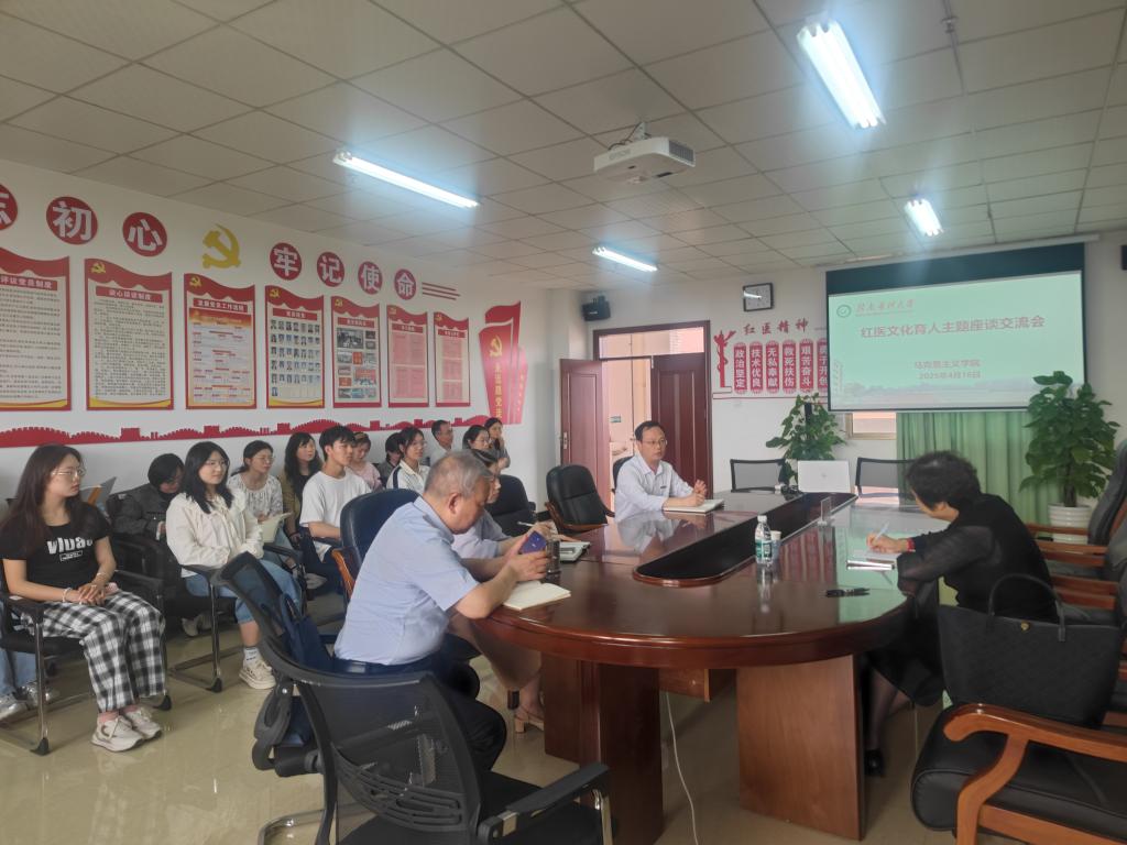 近日,哈尔滨医科大学人文社科学院院长、医学伦理学研究所所长尹梅教授应邀来校,就红医文化育人工作与医学伦理学课程建设开展专题交流。马克思主义学院领导、相关教师及学生代表参加座谈。