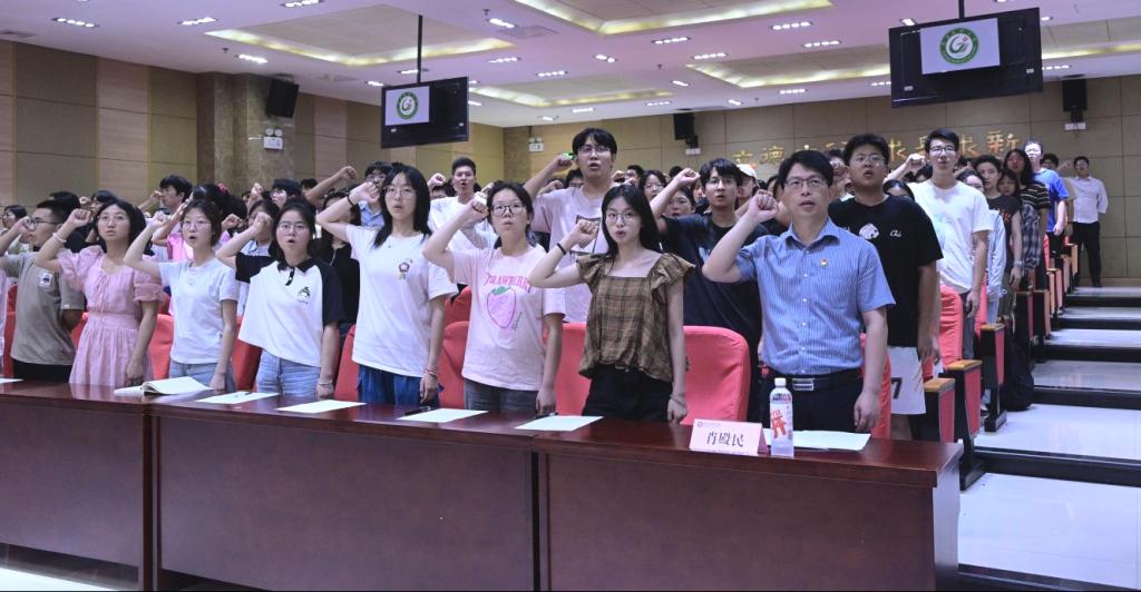 仪式在庄严的国歌中拉开序幕。全体学员观看《我宣誓》短片并集体诵读《共产党宣言》,铿锵有力的誓言在报告厅久久回荡。