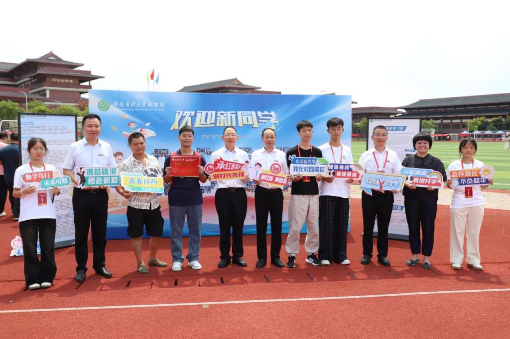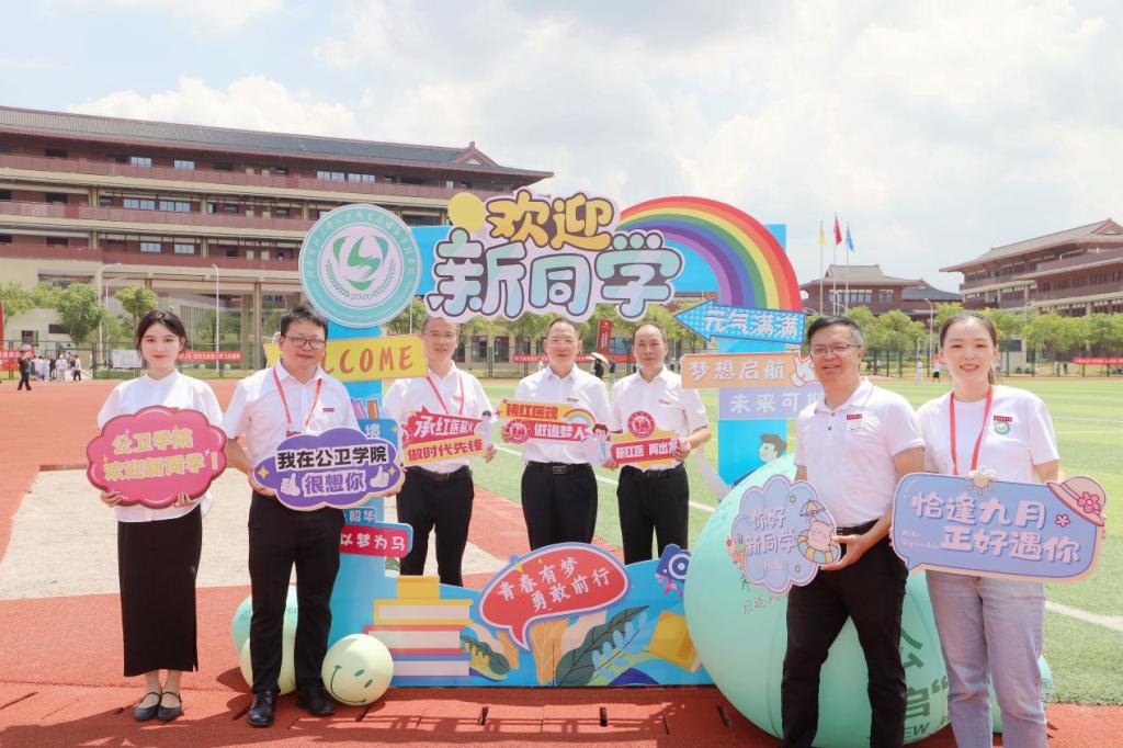 在公共卫生与健康管理学院迎新现场,膳食宝塔模型、腰围尺、体重管理宣传扇等体现公共卫生专业特色的物品吸引众多新生驻足。同学们在签名球上郑重写下未来心愿,手持“红医魂”主题手牌合影,在入校第一天就感受到“政治坚定、技术优良、无私奉献、救死扶伤、艰苦奋斗、勇于开创”为内涵的红医精神。