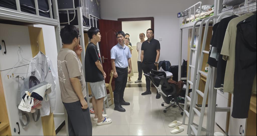 开学典礼后,肖殿民带队开展学生宿舍走访,与同学们亲切交谈,细致查看住宿环境,询问生活需求,叮嘱大家尽快适应新环境,在集体生活中互帮互助,以饱满状态投入临床学习。
