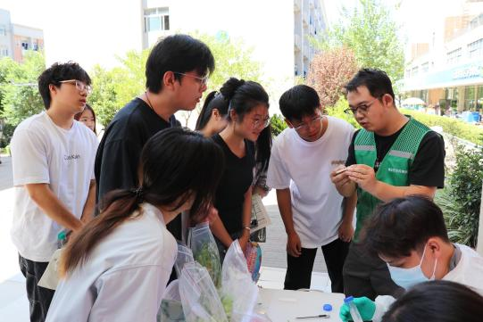最受师生关注的当属食品快速检验台。检测人员携带专业快检设备与试剂,从学校食堂随机抽取青菜、辣椒、西红柿等新鲜蔬菜及猪肉等常用食材,现场开展检测。取样、加试剂、震荡、读取结果……每一个操作步骤都清晰展示在师生面前,检测人员还同步讲解不同项目的检测原理与判断标准,重点针对师生关心的农药残留、瘦肉精等安全隐患指标进行检测。经过专业操作,此次现场共完成43项次快检,所有受检样品均符合国家食品安全相关标准要求,让师生直观感受到校园食材的安全保障。