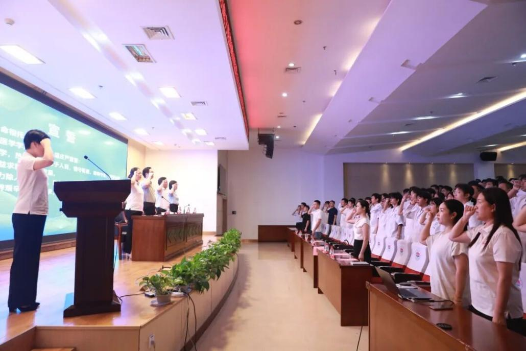 开班仪式上,赣南医科大学第一附属医院(第一临床医学院)党委委员、第一附属医院纪委书记陈杰斌深情寄语全体同学,要坚守从医初心,勇担医者使命;要锚定奋斗目标,夯实从医根基;要恪守医德医风,筑牢思想防线。