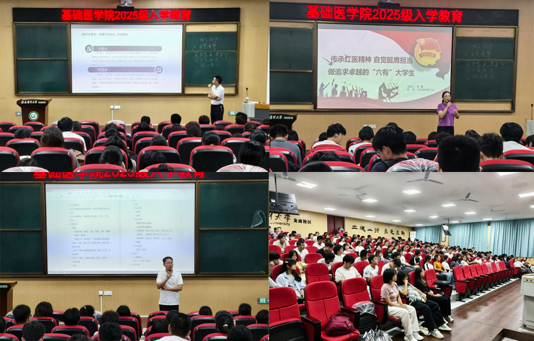 9月22日至24日,基础医学院2025级本科生入学教育在龙南校区顺利开展。为期三天的课程围绕理想信念教育,党团知识,校纪校规、成长规划等核心主题展开,为新生快速适应大学生活、明确成长目标筑牢根基。