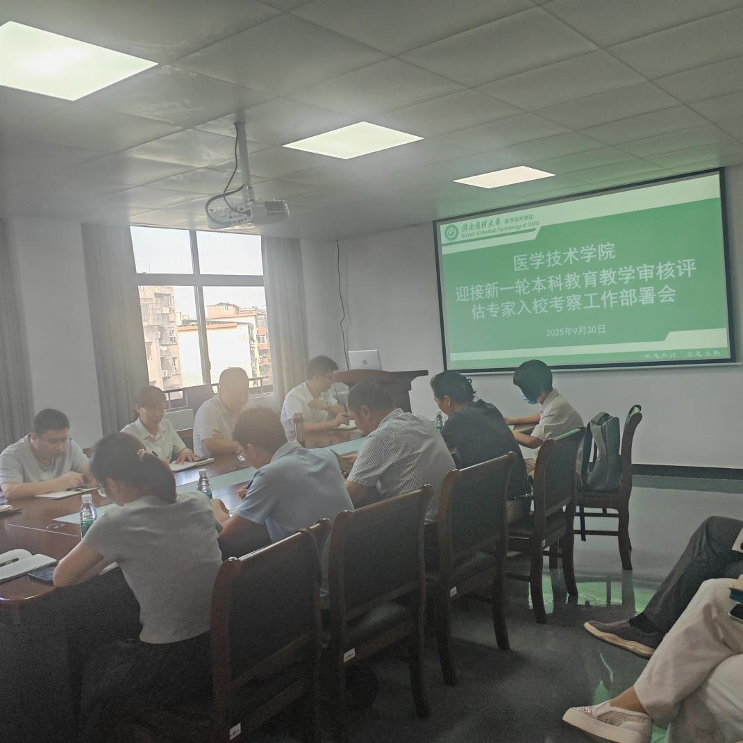 9 月 30 日下午,医学技术学院在章贡校区召开迎接审核评估专家入校考察工作部署会,统筹推进本科教育教学审核评估迎评准备与国庆、中秋假期安全工作,学院领导班子、各科室负责人及教学秘书参会,院长徐小军主持会议。