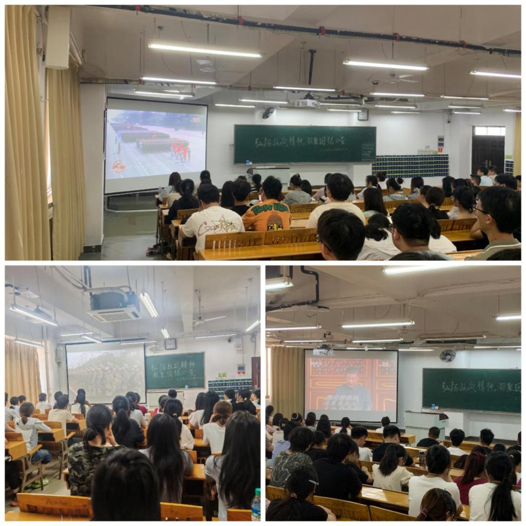 9月3日,药学院组织学生集中收看了中国人民抗日战争暨世界反法西斯战争胜利80周年阅兵仪式直播。气势恢宏的阅兵场面,展现了国家强盛与军队威武,进一步激发了学生的民族自豪感与爱国热情。同学们在观看阅兵时,深刻感受到如今和平年代的来之不易,纷纷表示要以红医精神为指引,像战争时期的红医们一样,在自己的专业领域发光发热,为实现强国梦、强军梦贡献青春力量,以精湛的医术和无私的奉献守护人民健康。