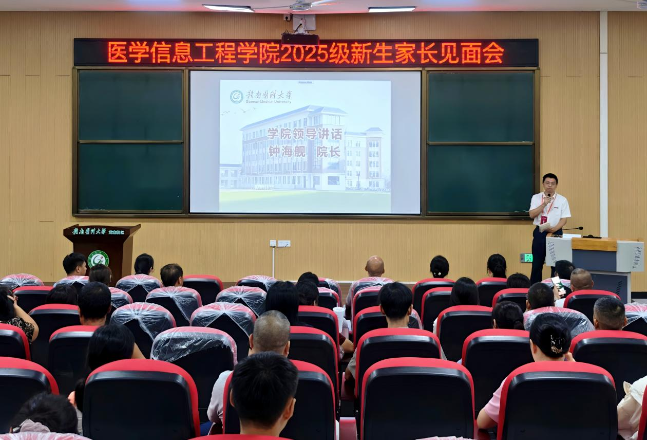 9月4日下午,医学信息工程学院在龙南校区召开2025级新生家长见面会。该院党委书记唐明、院长钟海舰、各教研室主任、教师代表、2025级新生班主任、全体辅导员参加,280余名新生家长到会。会议由该院党委副书记王静雅主持。