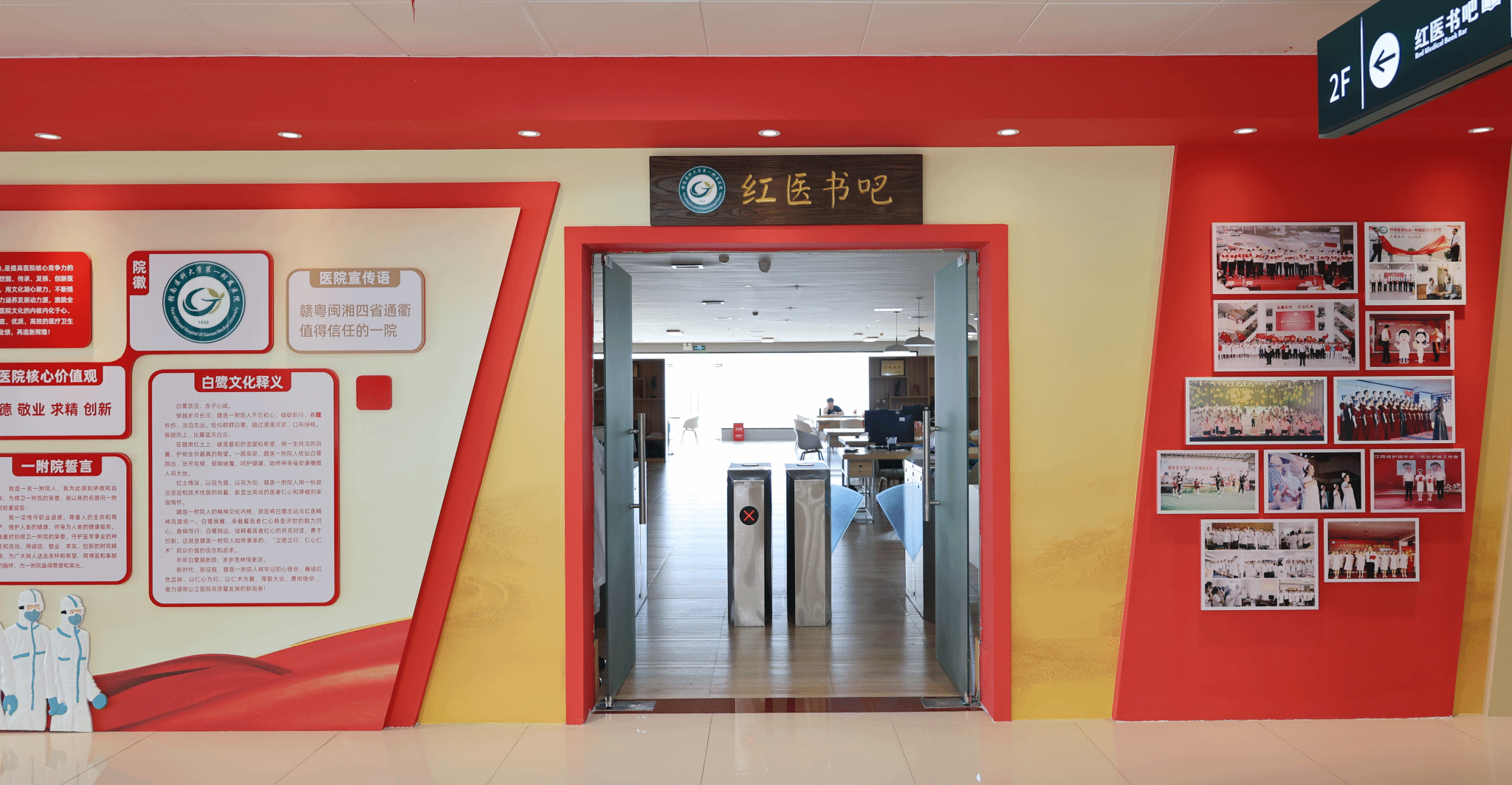 扎根赣南革命老区办医办学的我校一附院,依托赣南红色资源,赓续红色血脉,深入贯彻落学校“红医魂”党建品牌内核实质,创新打造“医心红”党建子品牌,将“政治坚定、技术优良、无私奉献、救死扶伤、艰苦奋斗、勇于开创”的红医精神融入医院治理和医教研全过程,走出了一条党建引领事业高质量发展的特色之路。