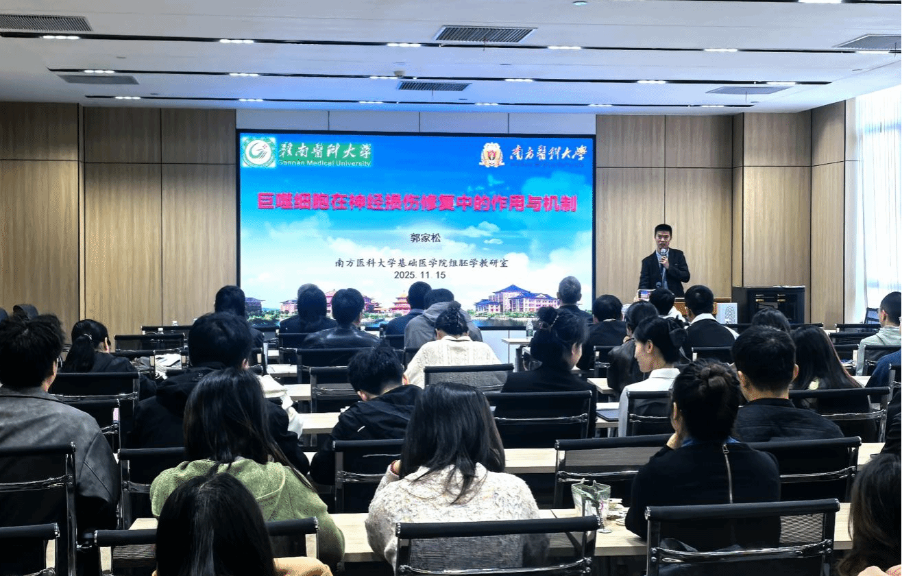 郭家松教授在讲座中结合国内外最近几年的研究进展及其在该领域的研究成果介绍了神经损伤修复研究的热点和难点问题,巨噬细胞在神经损伤与修复中的主要作用以及未知的关键问题。阐明了如何通过调控巨噬细胞的功能促进神经损伤修复及巨噬细胞在损伤神经中完成其吞噬功能后的命运及其意义和机制。