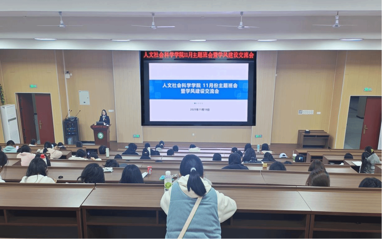 为传承红色基因,以红医精神铸魂育人,进一步强化学生思想政治引领和学风建设工作,11月18日晚,人文社会科学学院在龙南校区开展“红医铸魂 励学笃行”11月主题班会暨学风建设交流会。本次班会由该院党委副书记毛磊焱主讲,辅导员郭伟卫及全体2025级学生参加。