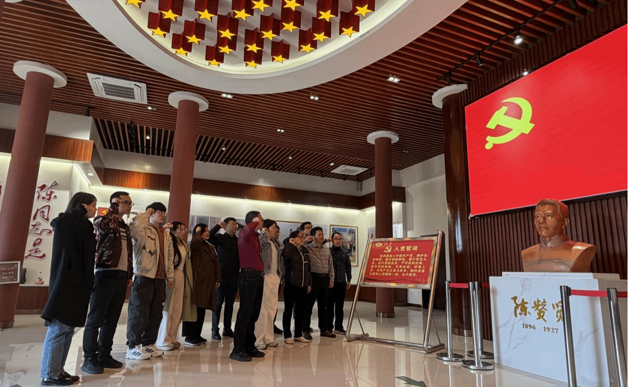 在参观完纪念馆后,全体党员同志在纪念馆内面对鲜红的党旗,高举右拳,庄严重温了入党誓词,对革命先烈进行了深切缅怀。