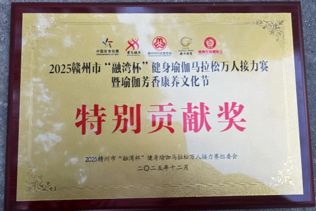 12月20日,2025赣州市第五届“融湾杯”健身瑜伽马拉松万人接力赛暨瑜伽芳香康养文化节在赣州蓉江新区举行。我校老年大学瑜伽班的学员们以饱满热情参与这场全民康养盛会,凭借在瑜伽公益推广中的突出贡献,荣获“赣州市瑜伽公益活动特别贡献奖”。