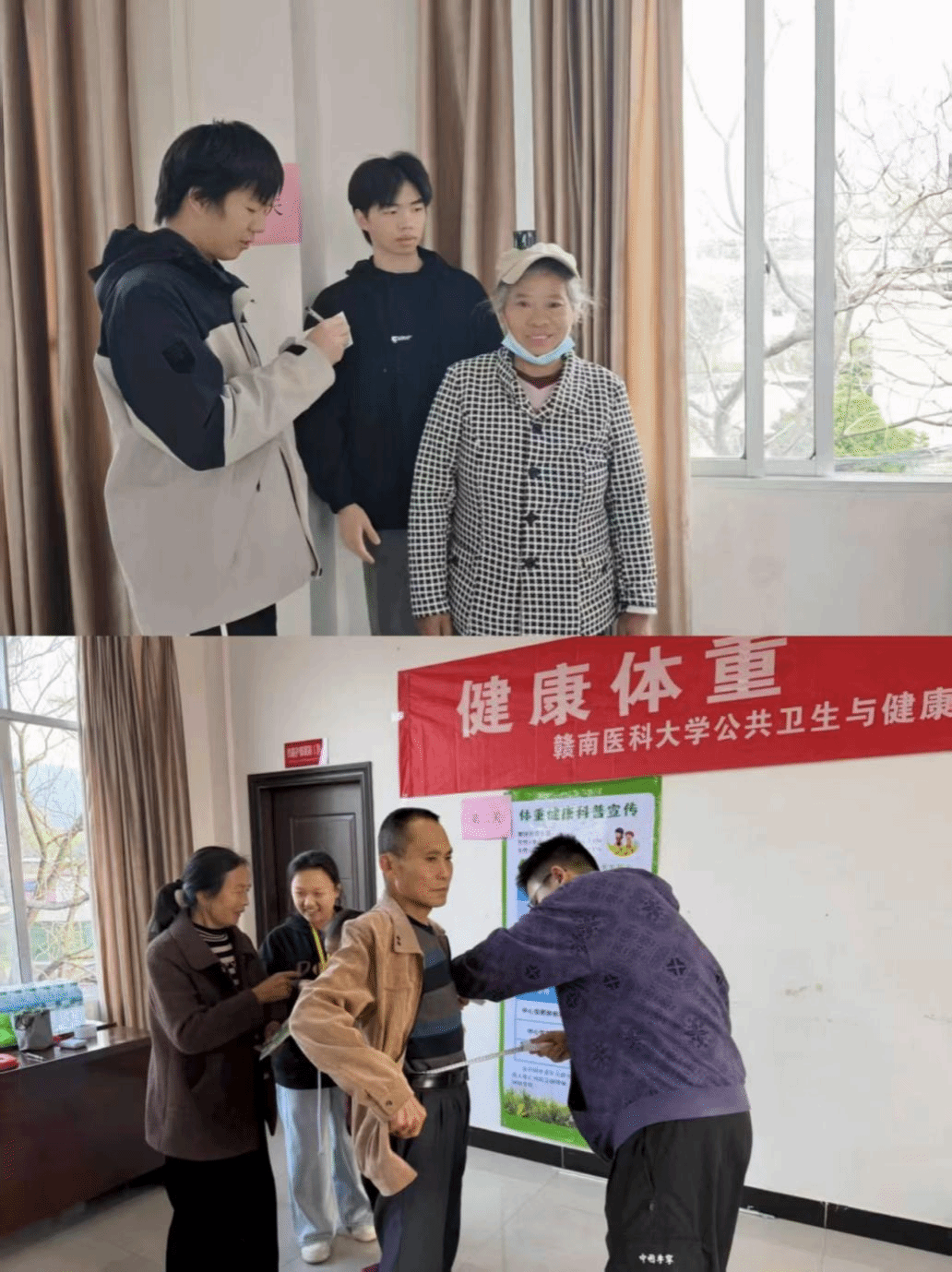为深入推动健康中国战略在基层落地,提升居民健康素养,12月19日,公共卫生与健康管理学院联合龙南市疾病预防控制中心,组织“红色蒲公英”公卫社会实践志愿服务队,深入龙南市红岩村,举办“健康体重‘虔’民行动”主题志愿服务活动。