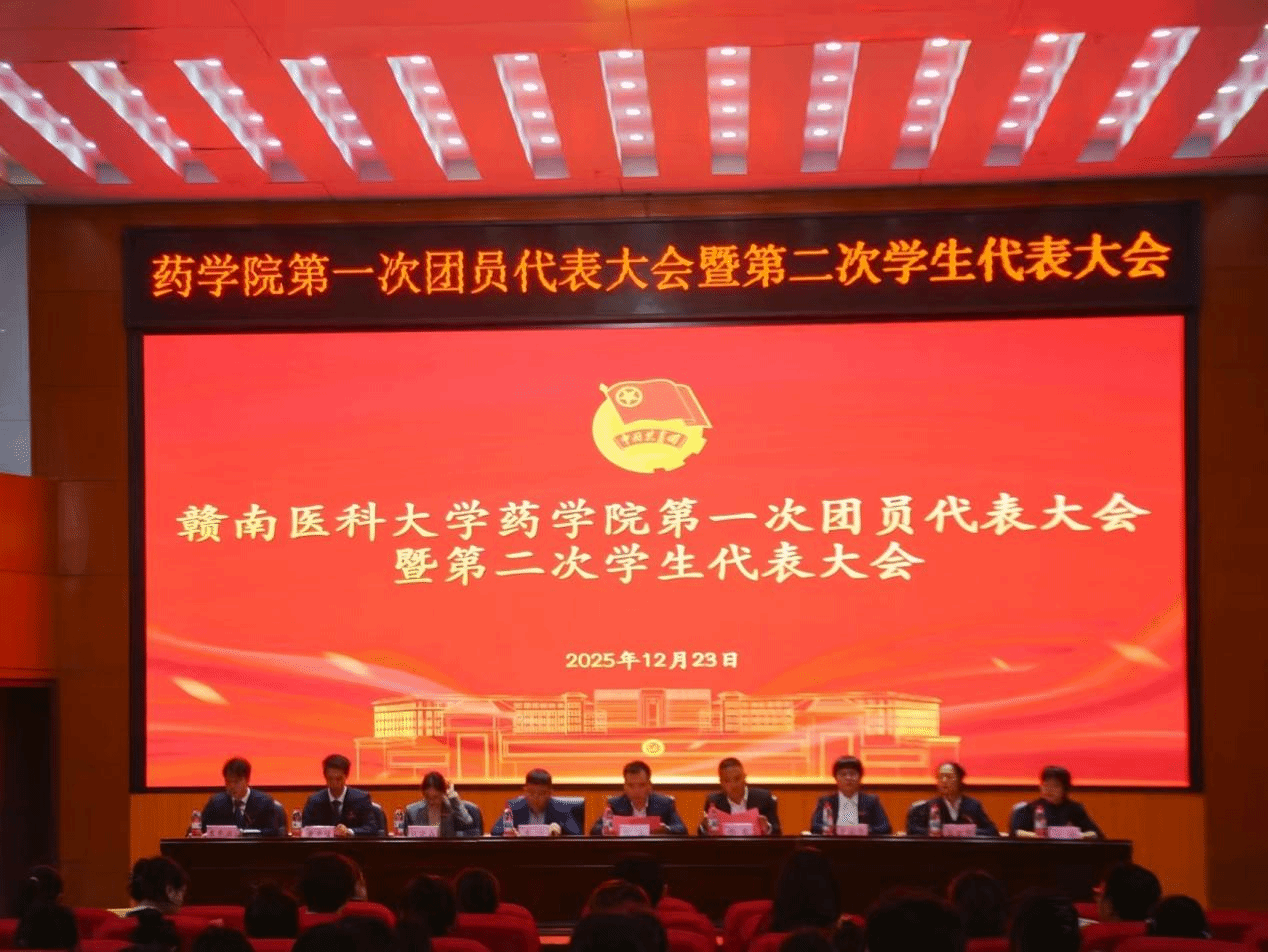 12月23日晚,赣南医科大学药学院第一次团员代表大会暨第二次学生代表大会在蓉江校区多功能报告厅召开。学校团委书记郑直、药学院领导班子出席大会,正式代表、列席代表共计300余人参加。