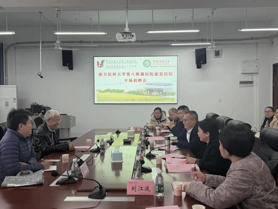 12月25日,康复学院在蓉江校区举办南方医科大学第八附属医院专场招聘会。南方医科大学第八附属医院康复科康复学科带头人、南方医科大学康复医院执行院长王俊华,南方医科大学第八附属医院康复科主任助理、康复治疗中心负责人罗兴文,康复学院党委书记叶贞丽,康复学院党委副书记、院长温优良,康复学院党委委员、副院长李伟,康复学院各教研室负责人以及2026届毕业研究生共同参与。
