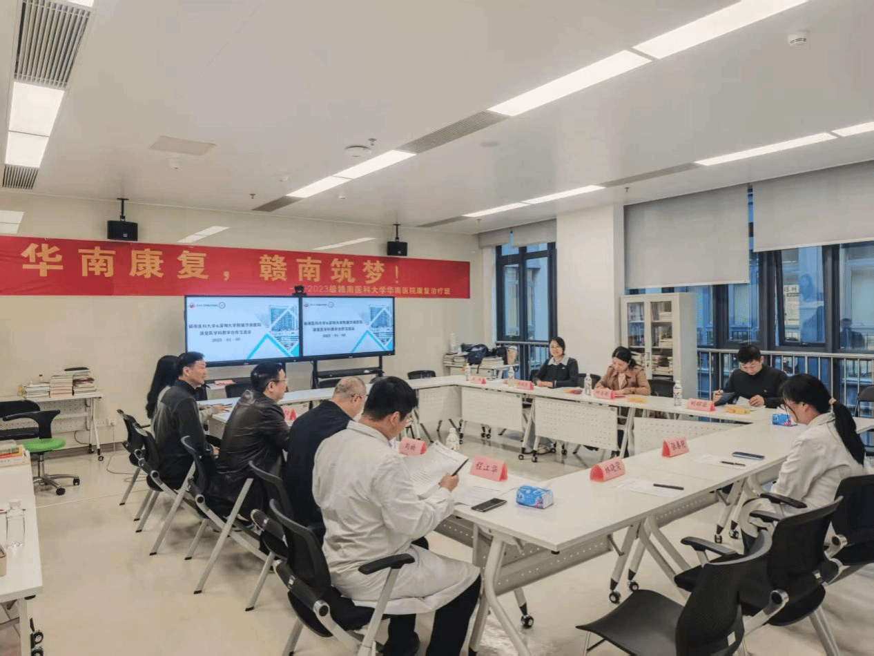 在深圳大学附属华南医院,叶贞丽一行与医院助理院长樊光辉、科教部部长刘楠、康复医学科主任姜鹤群、康复医学科治疗师长程江华等开展座谈交流。会上,樊光辉从医院的建院历史、科室建设、医院特色、用人需求等进行了详细介绍,程江华从科室临床带教、科室诊疗情况、2+2学生教学、实践开展情况等进行了详细汇报。叶贞丽从学院康复治疗学“2+2”创新型培养要求、同质化教学、管理等方面进行了介绍,双方还就如何推进康复治疗学“2+2”创新型培养进行了深入交流。会后,还与在此进行培养的学生进行交流,调研了学生近期学习感受和收集了相关建议。