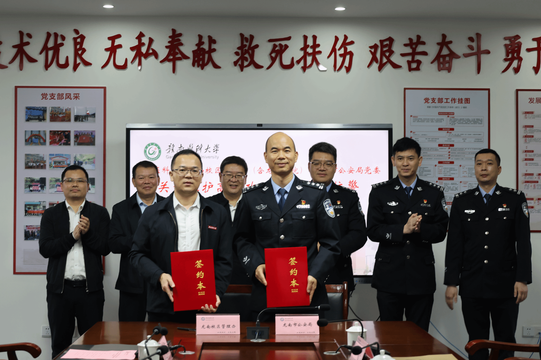 4月3日上午,我校龙南校区管理办(未来医学学院)与龙南市公安局校警联动协作框架协议签订仪式在龙南校区举行。
