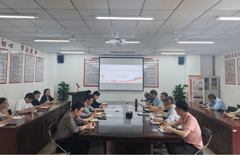 为贯彻落实各级关于高校毕业生就业工作的部署要求,发挥学院“红医强基”党建品牌引领作用,扎实推进2026 届毕业生就业工作,近日,基础医学院党委召开2026届毕业生就业工作第三次推进会。学院党委领导班子、各科室负责人、专业负责人、全体辅导员参会,会议由陈联娇主持。