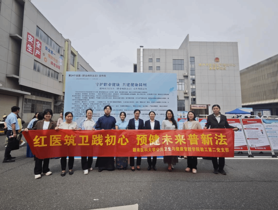 为深入落实第 24 个全国《职业病防治法》宣传周部署,紧扣“守护职业健康,共建健康中国”主题,4月24日上午,公共卫生与健康管理学院党委组织师生党员,赴赣州经开区金岭科技园开展职业病防治普法实践活动,积极参与地方职业健康事业建设。