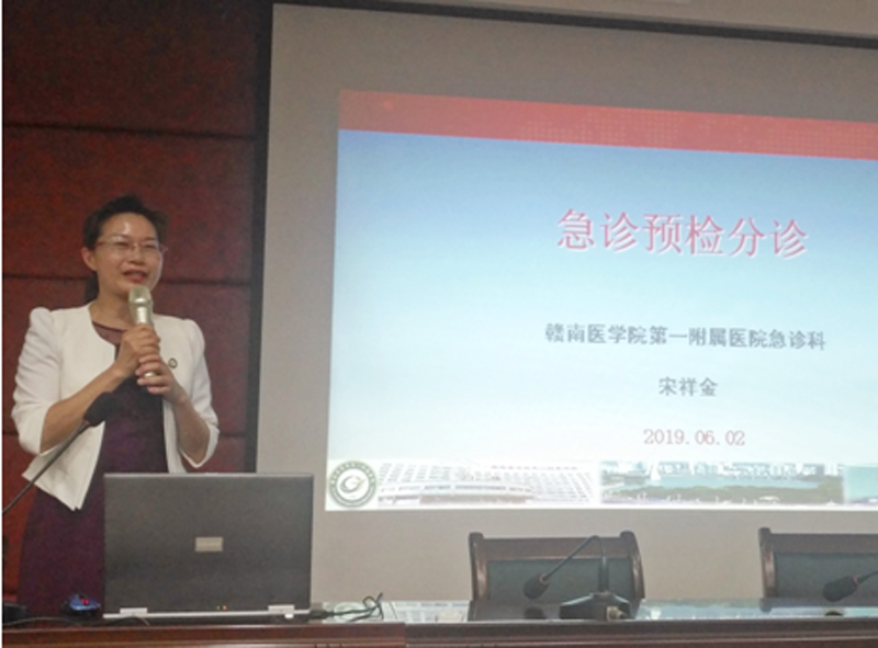 宋祥金护士长,以“急诊预检分诊”为题,对如何通过安全有效的急诊预检分诊,快速准确识别急危重症患者,确保患者安全,提高急诊运行效率进行了分享。