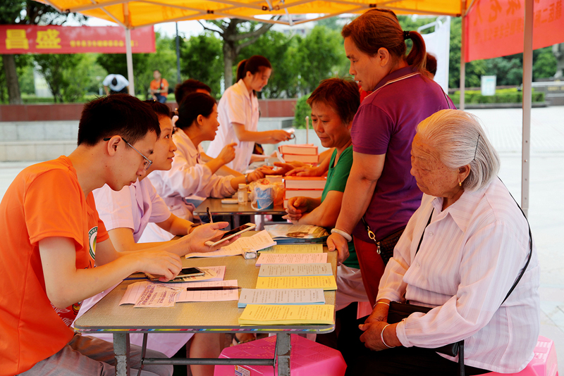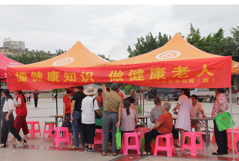 该院公卫科及宣传科的同志通过展板展示宣传、张贴海报标语、发放科普资料和纪念品等多种形式,向现场群众宣传老年健康相关政策,并配合医护人员就老年人关心的高血压、糖尿病、冠心病和脑血管病等常见病、慢性病的自我保健和预防进行了健康宣教。