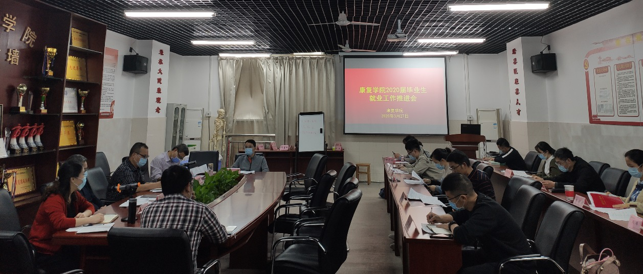 3月27日下午,康复学院召开2020届毕业生就业工作推进会,该院党政领导、专业负责人、教研室主任、毕业班班主任和辅导员出席会议。会议由学院党委副书记叶贞丽主持。