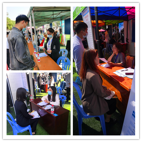 人文社科学院2017级英语2班聂立潭在参加招聘会后说:“能在学校门口参加这样的大型招聘会感到十分高兴。我和同学走完了整场,分别投了10来份简历,现场还面试了3家,感觉收获非常大。”