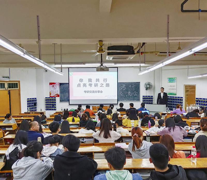 11月22日晚上,研究生会在章贡校区举办了主题为 “你我同行,点亮考研之路”的考研经验交流分享会,并邀请了郭忠、姬丙哲、杨忠源、补维、吕俏及刘欣等几名初试成绩优异的研究生作为分享会的主讲嘉宾,吸引了近百名本科生参加活动