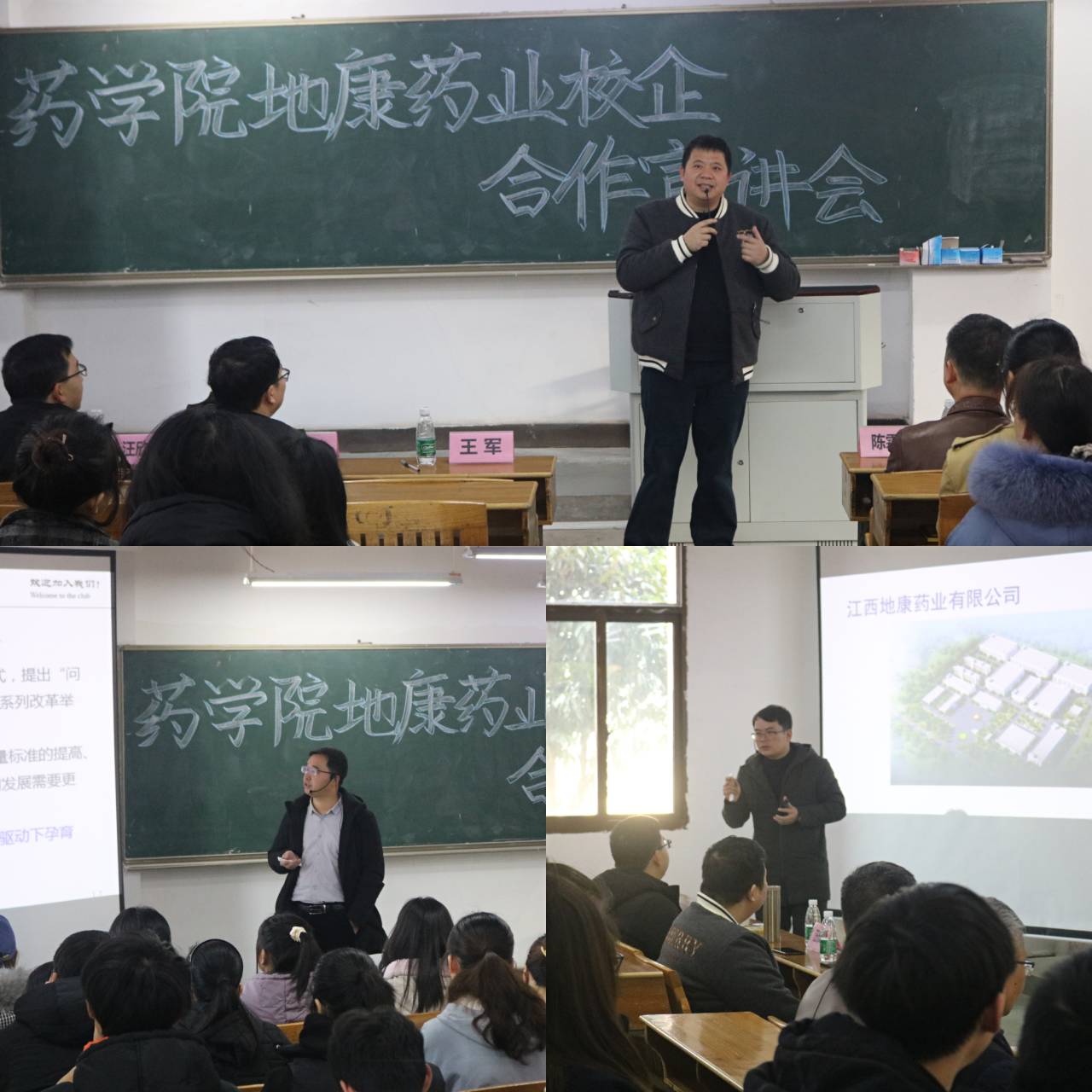 12月20日上午,江西地康药业有限公司在黄金校区举行地康班组建的校园宣讲会。地康药业董事长王军、总经理陈志敏、副经理汪欣源亲临现场进行宣讲,药学院党委书记陈霖柏、副院长赖日勇以及辅导员、班主任代表和2018级、2019级200余名学生参加了本次宣讲会。宣讲会由赖日勇主持。