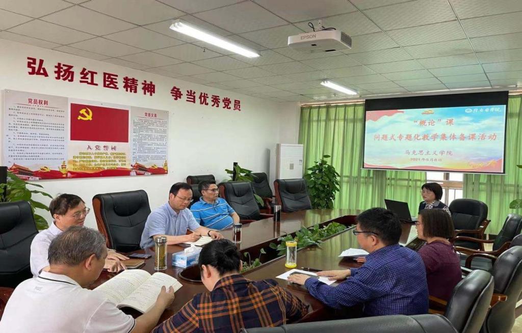 为了更好地推进党史教育和思想政治理论课教学相结合,提高思政课教学质量,5月8日上午,马克思主义学院“毛泽东思想和中国特色社会主义理论体系概论”课教研室举行了“问题式专题化”教学集体备课会。马克思主义学院负责人、健康中国战略研究中心负责人、部分教研室主任和概论课教研室全体教师参会。