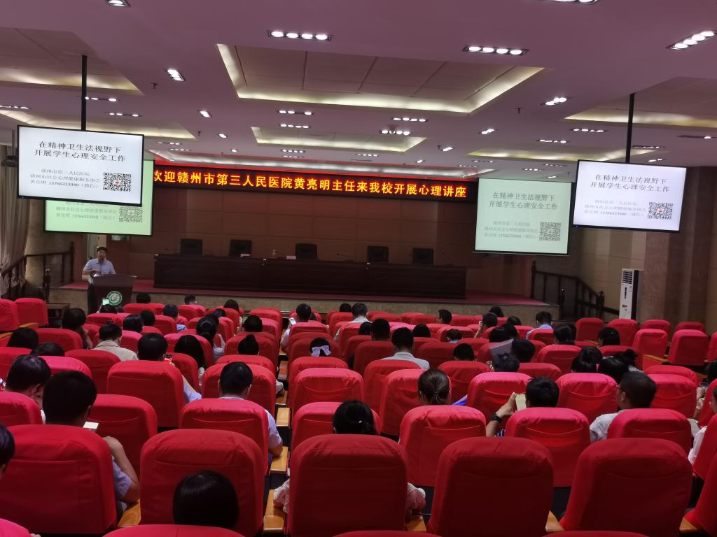 5月27日,我校学生工作处联合心理咨询中心邀请赣州市第三人民医院心防科科长黄亮明为学校学生管理干部开展主题为“在精神卫生法视野下开展学生心理安全工作”的讲座。