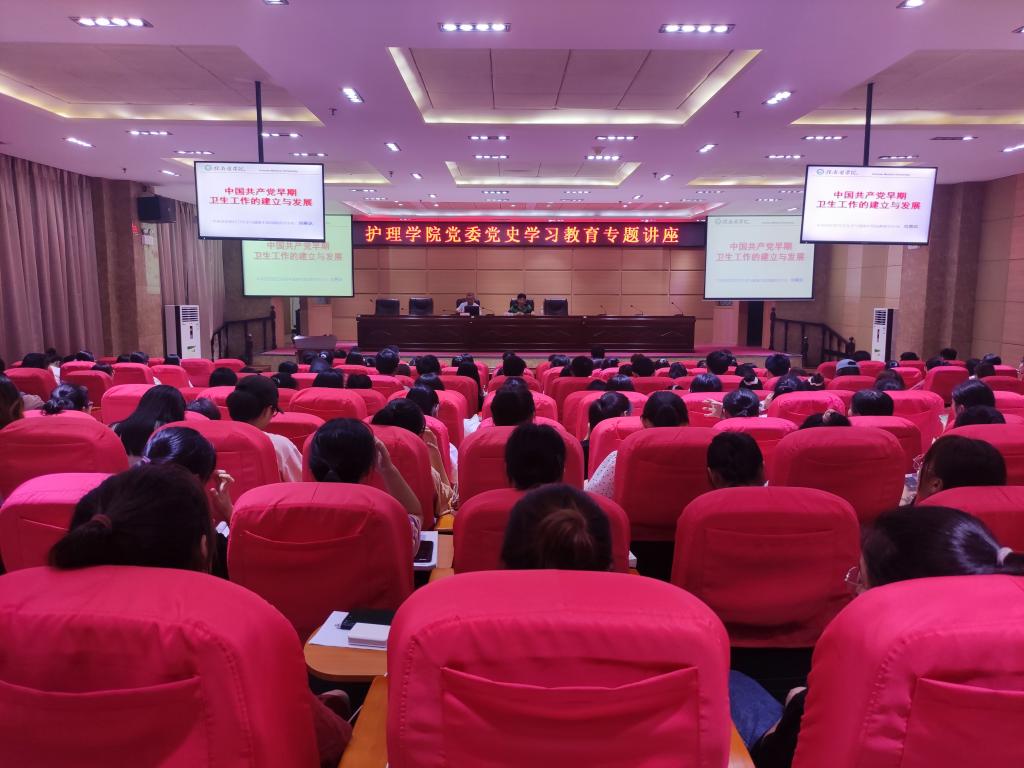 6月17日晚,护理学院邀请学校中央苏区医疗卫生史与健康中国战略研究中心刘善玖教授开展党史学习教育专题讲座,该院教师、学生党员和入党积极分子200余人到场聆听,该院党委副书记黄明主持。