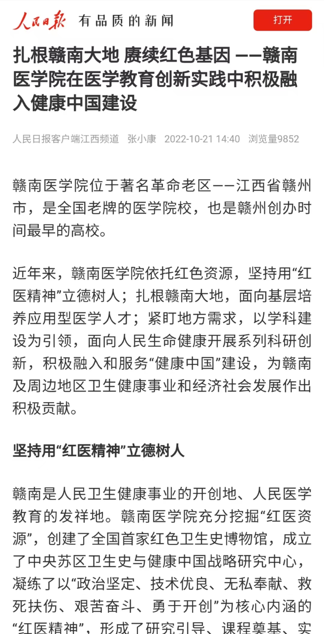 下一篇:《健康报》:扎根赣南大地 赓续红色基因——赣南医学院在医学教育创新实践中积极融入健康中国建设