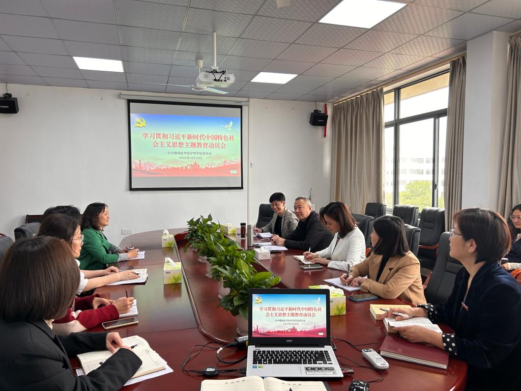 4月28日上午,护理学院召开学习贯彻习近平新时代中国特色社会主义思想主题教育动员会,该院领导班子全体成员及各科室负责人、党支部书记参会。