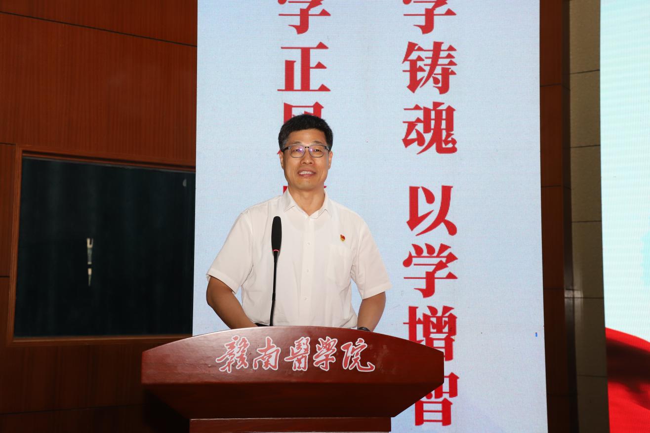5月17日上午,“传承红医精神 践行生命接力”——学习贯彻习近平新时代中国特色社会主义思想主题教育暨“生命接力先锋队”走进百家高校之赣南医学院联学联建主题党日活动在我校黄金校区举行。