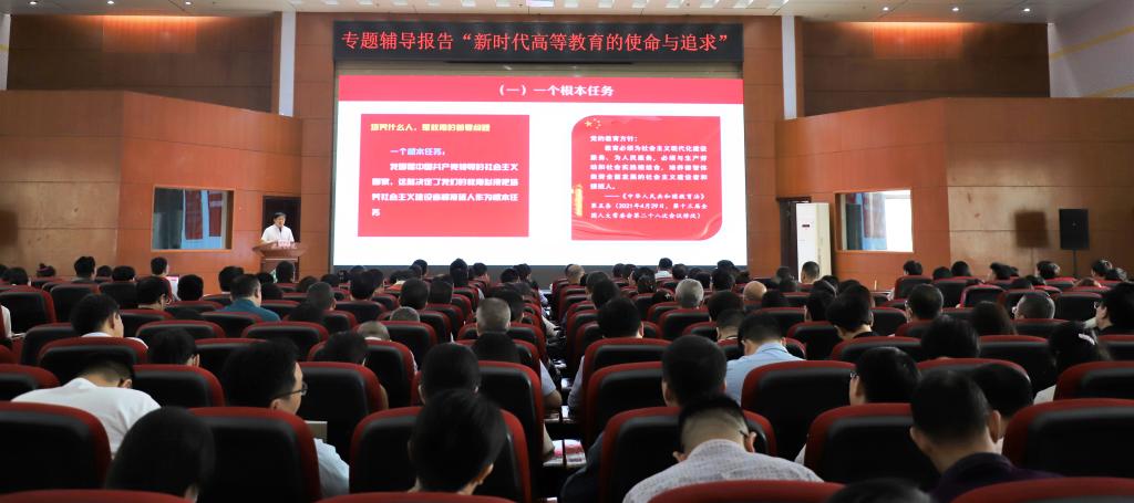 全校副处级以上干部、机关全体科级干部、学校主题教育办工作人员、师生代表等400余人现场聆听报告。