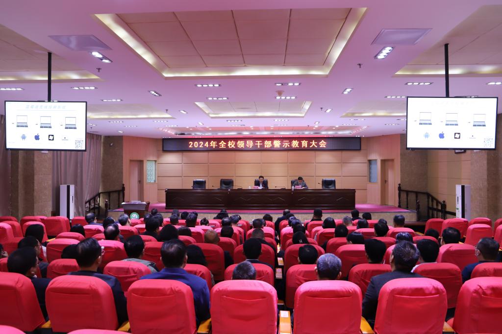 3月22日下午,学校召开2024年领导干部警示教育大会。学校党委书记、校长张小康出席会议并讲话。全体在家党政领导班子成员,全体处级领导参加会议。校党委委员、纪委书记、省监委驻学校监察专员、二级高级监察官黄海军主持会议。