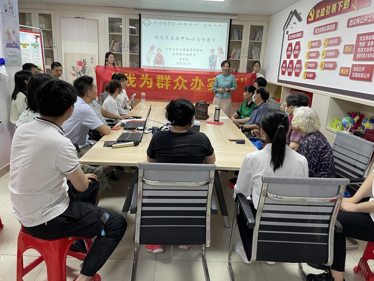 5月27日,公共卫生与健康管理学院组织40余名教师党员和学生代表到章贡区建国路社区,开展“我为群众办实事”公共卫生服务下基层活动,服务社区居民18户。