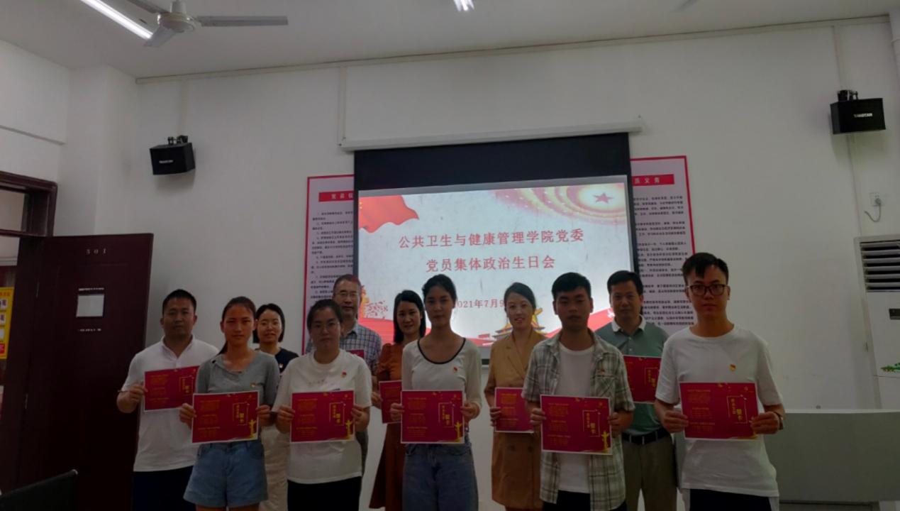 7月9日,公共卫生与健康管理学院组织6月、7月加入中国共产党的12名党员集体过政治生日,生日会上开展了形式多样的活动。