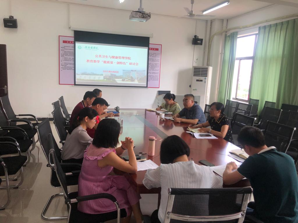9月8日下午,公共卫生与健康管理学院开展教育教学“提质量·创特色”研讨会,学院党政领导与各教研室主任集中交流研讨。