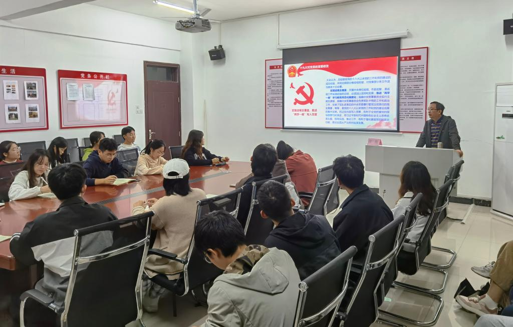 11月3日晚,公共卫生与健康管理学院党委副书记邱伟以“学习新党章,做新时代大学生”为题给入党积极分子上党课。教师代表及全体入党积极分子30余人参加。