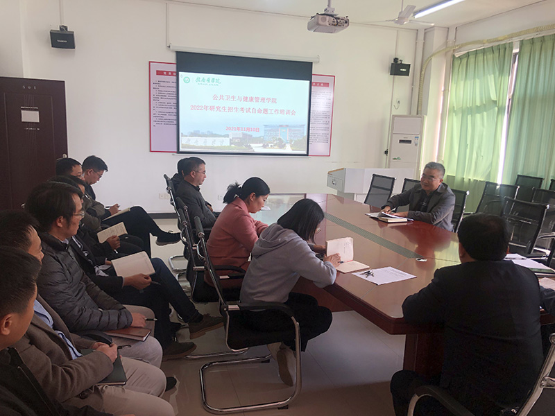 11月10日,公共卫生与健康管理学院召开2022年硕士研究生招生考试自命题工作培训会。学院院长黄诚、教研室主任、高级职称教师、博士参会。