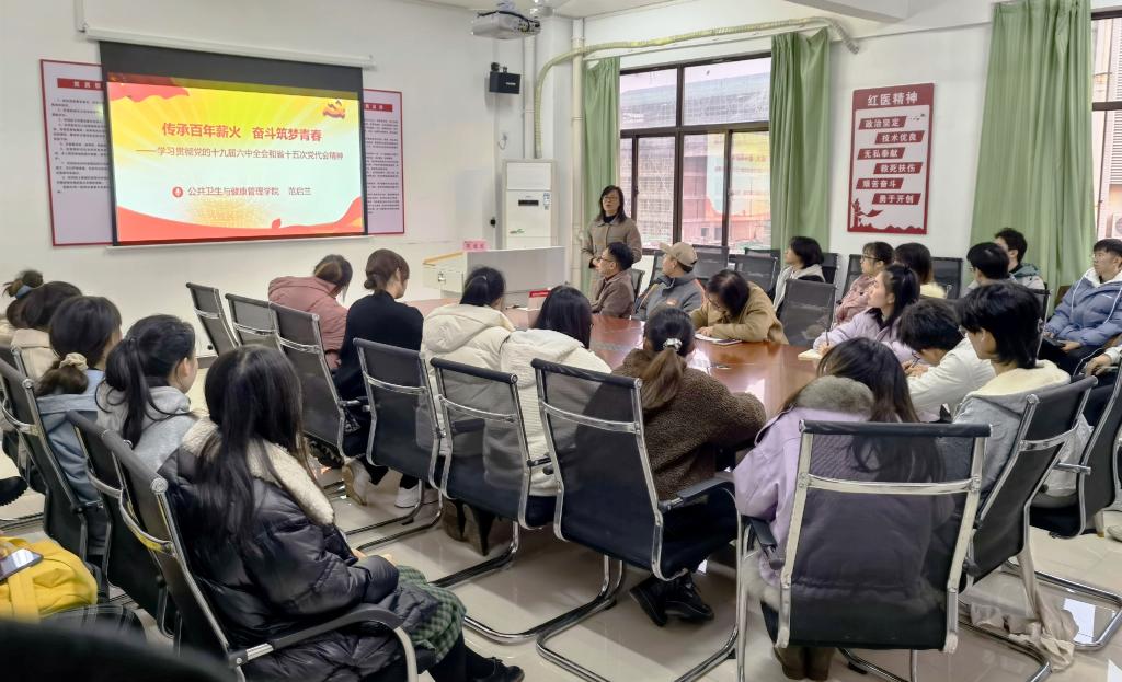 12月23日,公共卫生与健康管理学院党委书记范启兰为该院学生第一党支部党员、入党积极分子上了一堂专题党课,宣讲十九届六中全会精神和省第十五次党代会精神。