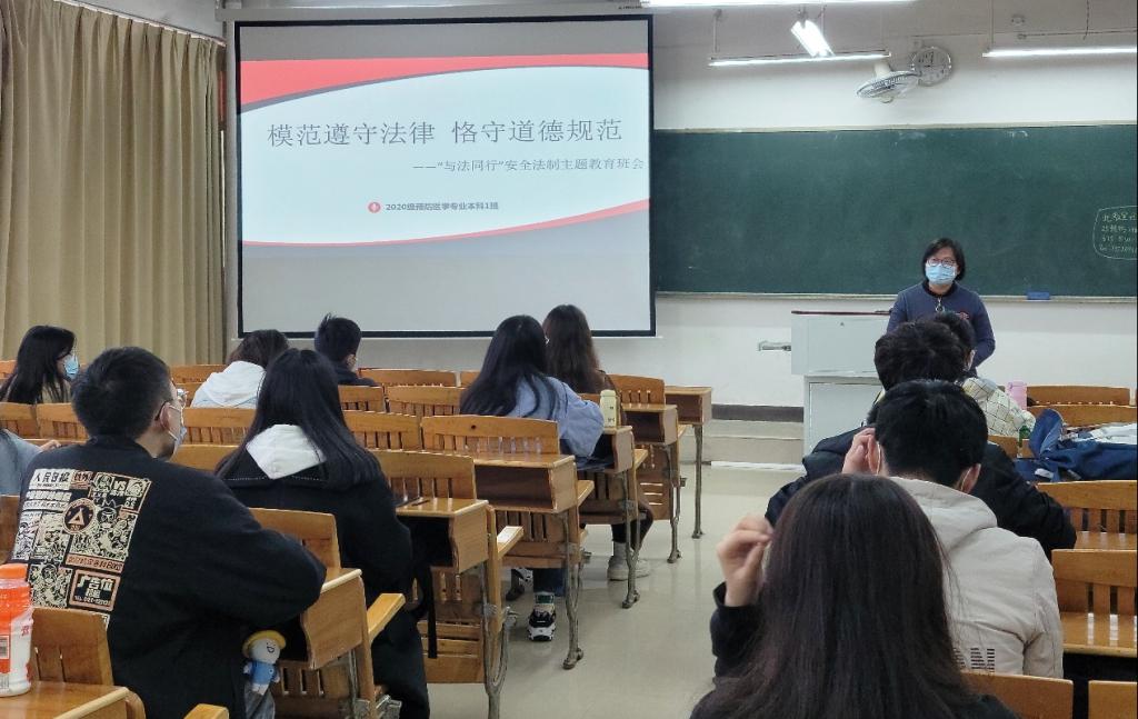 3月25日,公共卫生与健康管理学院2020级预防医学专业本科1班在黄金校区召开了“模范遵守法律 恪守道德规范”法制安全教育主题班会。该班联系院领导范启兰及全体同学40余人参加。