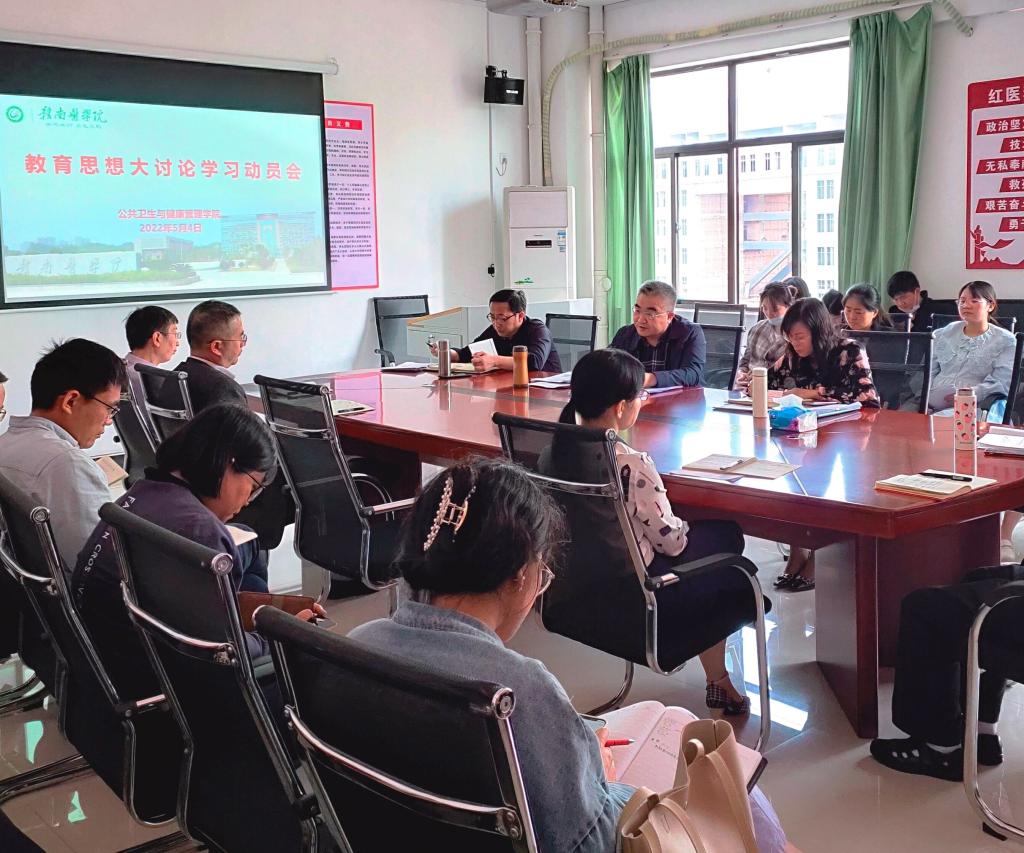 5月4日下午,公共卫生与健康管理学院组织全体教职工召开教育思想大讨论学习动员会。会议由学院党委副书记邱伟主持,学院党委书记范启兰作动员讲话。