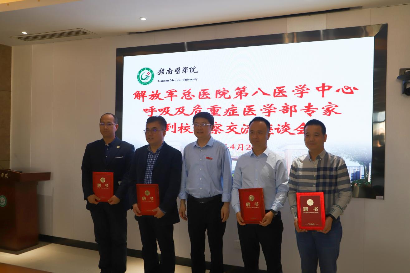 张小康为刘聚伟、解立新、磨国鑫、保鹏涛等解放军总医院第八医学中心专家颁发了赣南医学院客座教授聘书。