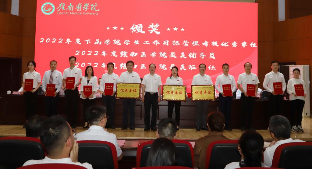 党委副书记、校长张小康指出,过去的一年,是学校团学工作凝心聚力、砥砺奋进、捷报频传的一年。在学校党委的坚强领导下,学校团学组织始终坚持以习近平新时代中国特色社会主义思想为指导,牢牢把握迎接召开和学习宣传贯彻党的二十大精神这条主线,紧紧围绕学校中心工作,以青年大学生理想信念教育为核心,以爱国主义教育为重点,以思想道德建设为根本,以德智体美劳全面发展为目标,在党团和班级建设、学风建设、学生日常事务管理、网络思想政治教育、职业规划与就业创业指导等方面,做了大量卓有成效的工作,为青年学生的成长成才和学校事业建设发展做出了积极的贡献。全体赣医青年学生不负韶华、勤学苦练、脚踏实地、勇于开创,在专业学习、志愿服务、创新创业等方面更是取得了可喜的成绩。