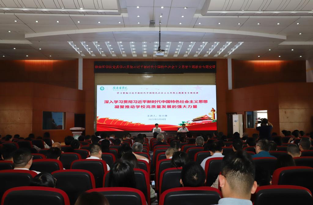 张小康从“全面学习领会习近平新时代中国特色社会主义思想的科学体系”“把学习贯彻习近平新时代中国特色社会主义思想不断引向深入”“着力用习近平新时代中国特色社会主义思想推动学校高质量发展”等三个方面阐述了习近平新时代中国特色社会主义思想的主要内容,并就如何贯彻落实提出了具体要求。