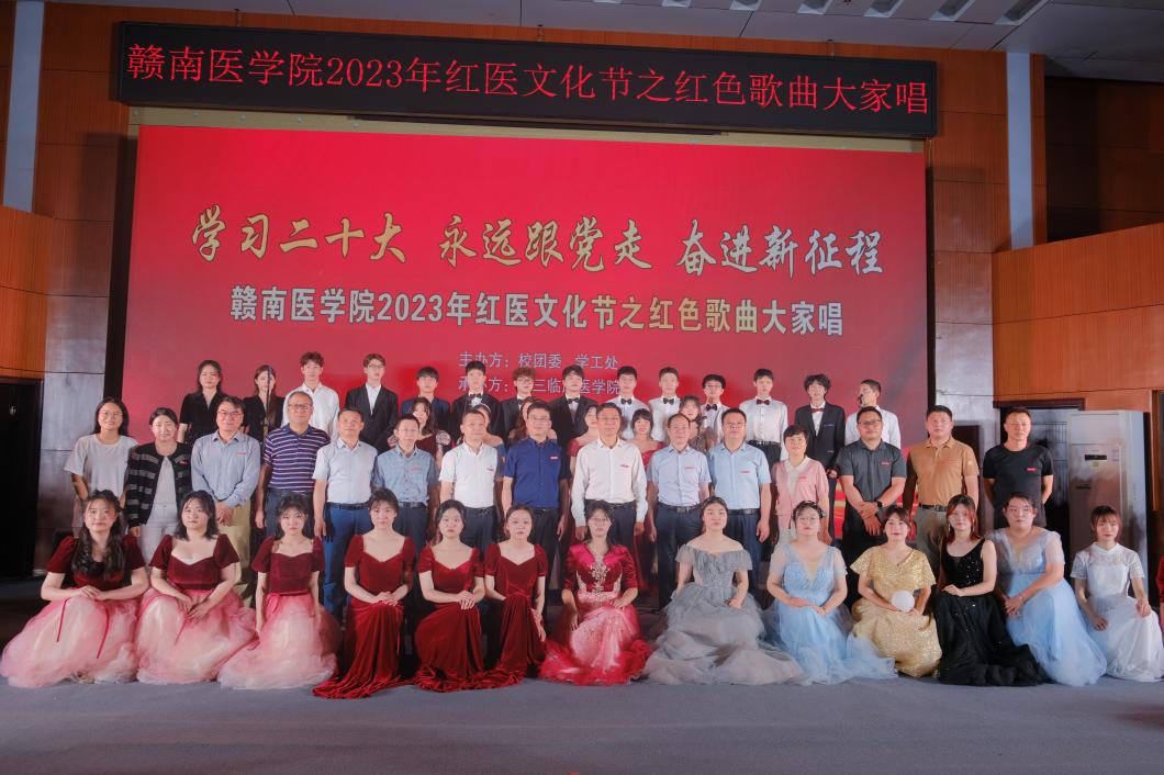 5月15日晚,2023年红医文化节之“红色歌曲大家唱”活动在黄金校区举行。活动由校团委、学工处主办,第三临床医学院承办。学校党委副书记曾泽鑫,党委委员、统战部部长赖传景出席。学工处、第三临床医学院全体党政班子成员,以及其它学院领导、团委和学工办负责人、学生代表420余人参加。