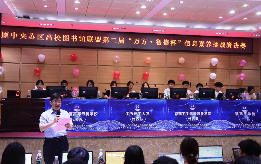 5月27日下午,由原中央苏区高校图书馆联盟、学校图书馆主办,原中央苏区高校图书馆联盟各成员馆承办,北京万方数据股份有限公司、北京智信数图科技有限公司协办的第二届“万方•智信杯”信息素养挑战赛线下总决赛在我校图书馆学术报告厅举办,学校党委委员、党委宣传部长廖志平致辞,原中央苏区图书馆联盟各馆领导及赛事指导老师莅临现场。